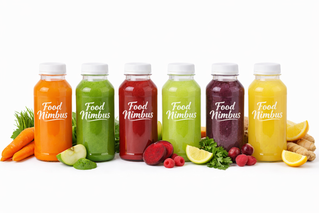 Cold -pressed juices made from 100% fresh fruits and vegetables.